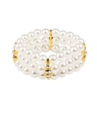 Vackert pärlarmband med vita pärlor och dekorativa stenar.