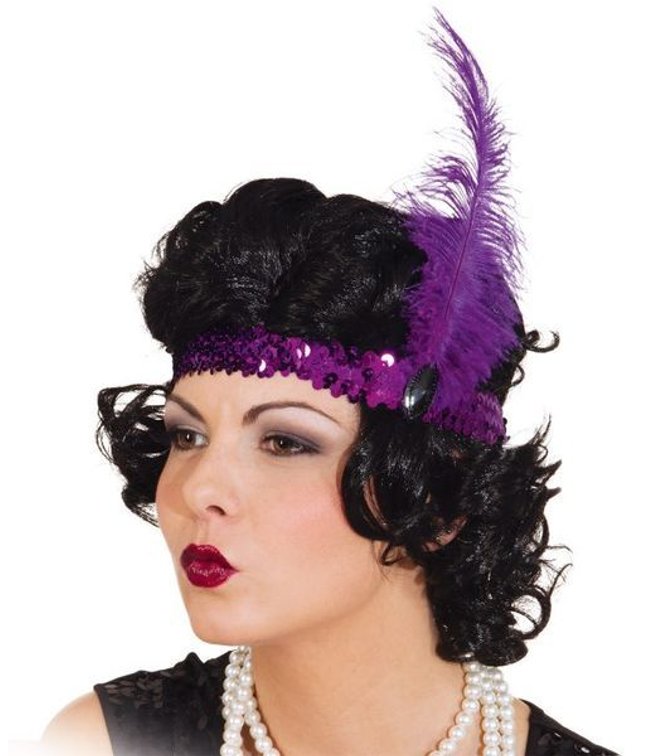 Pannband med lila paljetter och fjädrar till din 20-talsdräkt.