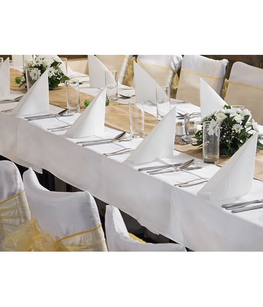 Vit tygbordsduk i polyester.