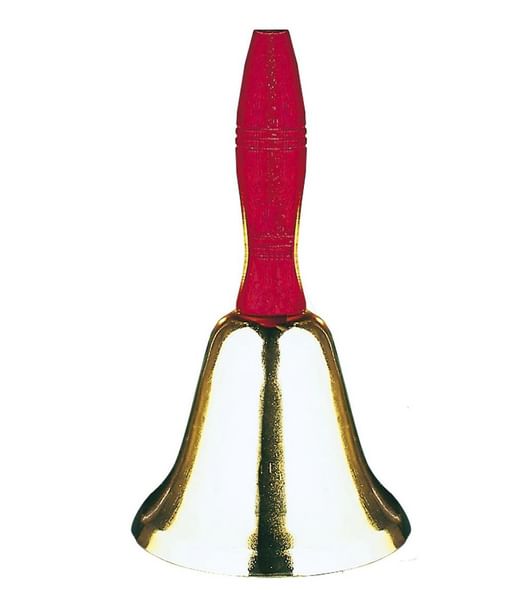 Vacker mässingsklocka med rött handtag till din tomtedräkt.