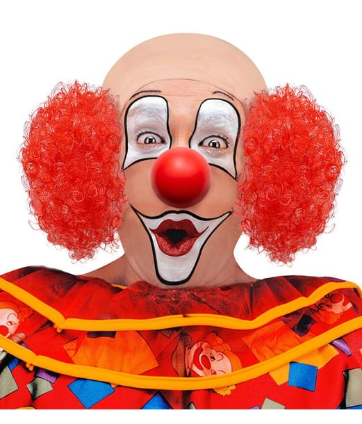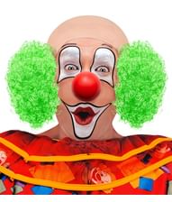 Rolig clownskalle i latex med rött, orange eller grönt hår.