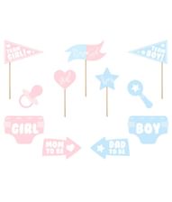 Boy eller Girl selfie stick set med 11 delar i rosa och ljusblå.