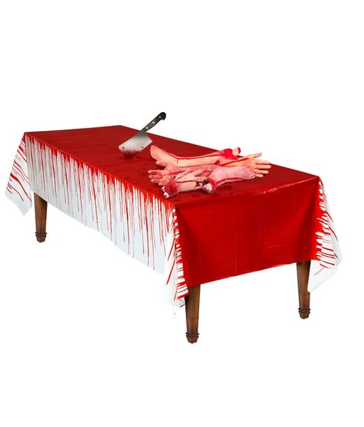 Blodig duk i plastfolie till Halloween-bordet. 137 x 275 cm.