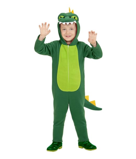 Grön Drake maskeraddräkt, jumpsuit med svans och huva.
