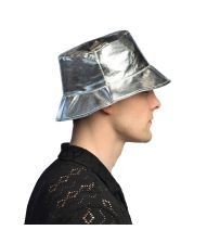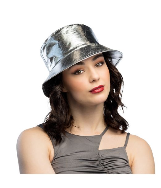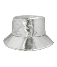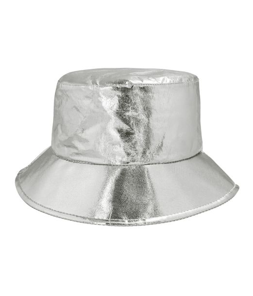 Solhatt i silver i en glänsande metallic finish. Kort brätte och rund topp för en tidlös look med en urban edge.