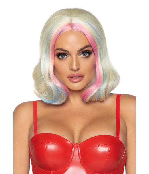 Ljus peruk med blå och rosa ränder till dräkten Harley Quinn.