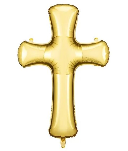 Vacker folieballong i guld formad som ett kors till konfirmationen.