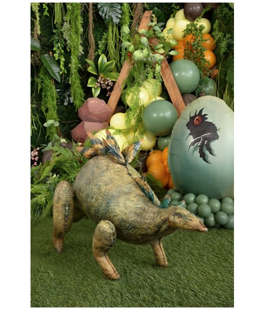 Stående Stegosaurus folieballong från Jurassic World, redo att dekoreras. Innehåller kropp och separata ben; för in benen i de markerade öppningarna innan uppblåsning. Storlek efter uppblåsning: ca 112 x 51 cm (44 x 20'').