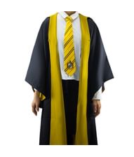 Hufflepuff cape med innerficka för trollstaven, broderat emblem och huva. För barn och vuxna.