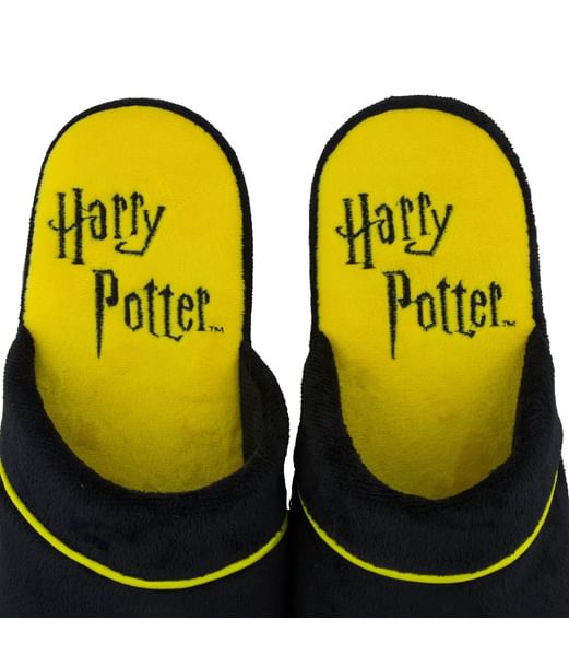 Mjuka tofflor i Hufflepuff-färger med broderat emblem.