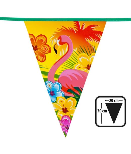6 m. vimpelgirlang med flamingoflagga i plastfolie till Hawaii-festen.