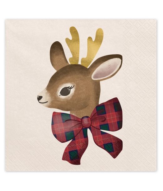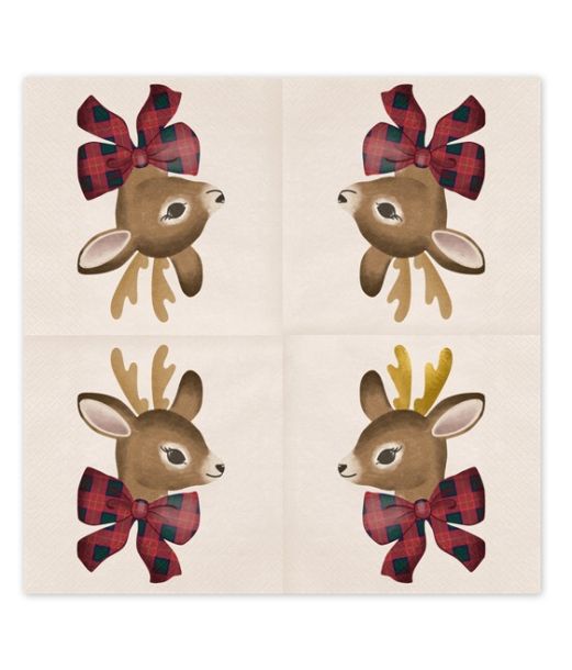 Skapa en mysig julstämning med dessa söta servetter med renmotiv och rutig rosett - perfekt för julbordet, adventsfesten eller julfesten.