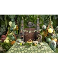 Jurassic World pappersduk med tryck i djungelinspirerad design, perfekt för att dekorera bord på temafester och födelsedagar.