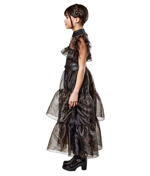 Svart gotisk balklänning med bälte till Wednesday Addams dräkten.