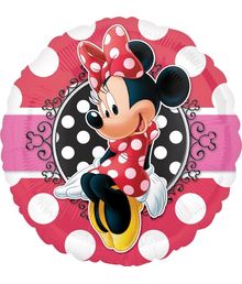 Rund folieballong med Minnie Pigg.
