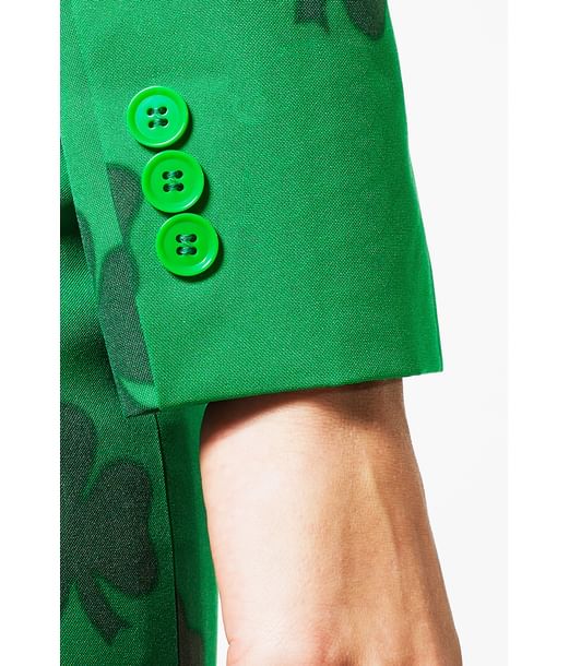 OppoSuit Miss St Patrick's Girl är en kostym med St Patrick's Day-mönster på både kavaj och kjol. Kavajen är slim-fit och kjolen har resår i midjan för komfort och passform. Setet levereras utan blus och är tillverkat i OppoSuits klassiska kostymkvalitet, lämplig för upprepad användning.