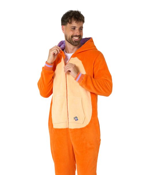 Gör vardagen lite roligare med denna mjuka och mysiga orangea kattoverall från OppoSuits! Onesien är tillverkad i 100% polyester med en borstad fleeceinsida för maximal komfort. Den har en söt huva med kattöron, sidofickor och en stor praktisk ficka framtill - perfekt för både avkoppling och utklädningsfester.