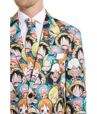 Kanalisera din inre pirat med denna officiellt licensierade One Piece kostym - det ultimata fanplagget! Dräkten pryds av ikoniska konstverk av Luffy, Zoro, Nami, Usopp, Sanji och Chopper och är en hyllning till den älskade animen. Perfekt för evenemang, cosplay, fester - eller bara när du vill sticka ut.
