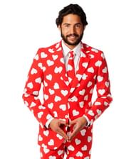 Perfekt kostym för Alla hjärtans dag med kavaj, byxor och slips i samma mönster.
