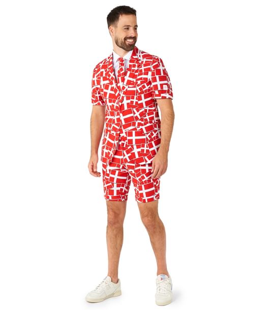 Den vackra Danmarks kostymen i en bekväm sommarvariant med kavaj med korta ärmar, kortbyxor och slips. Kavajen är tillverkad med en smal passform,