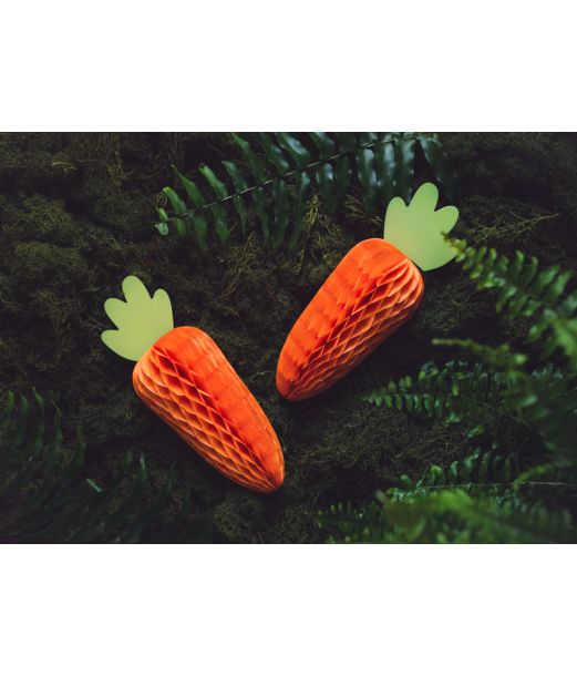 Dekorativ morot med struktur av honeycomb, ca 20 cm hög. Viks enkelt ut för en fyllig tredimensionell form med kartongtopp och upphängningssnöre för enkel upphängning.