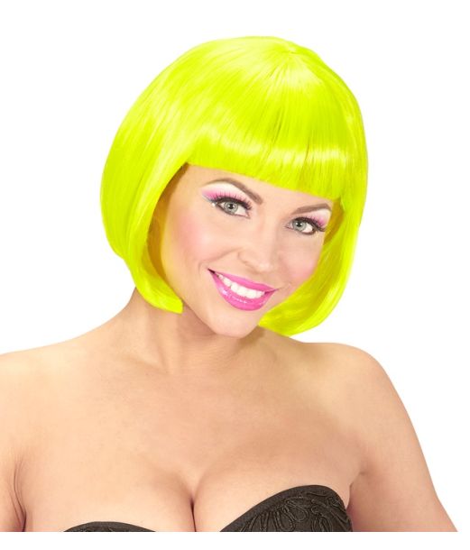 Neongul pageperuk med rak lugg. Tät, glansig finish för en slående look och tydlig färgeffekt under ljus.