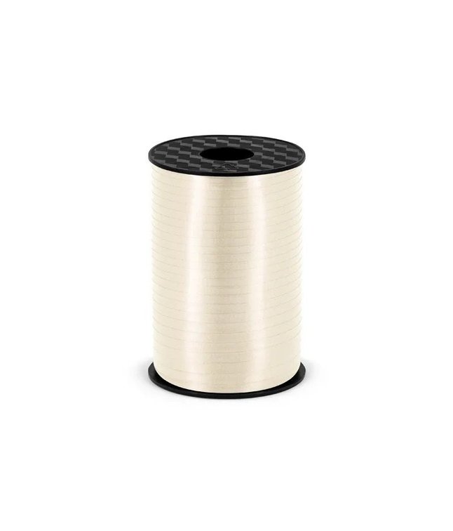 Presentband i ljus krämfärgad plast. 5mm bred, 225m lång.
