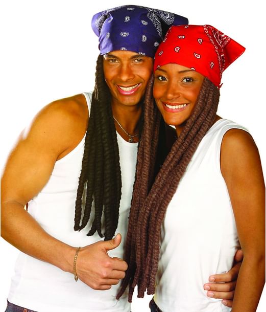 Dreadlocks peruk med bandana. Finns med brunt eller svart hår.