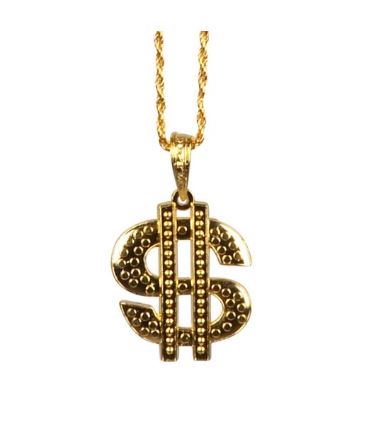 Guldfärgat Dollar Sign halsband för t.ex. hallick- eller shejkutklädnad.