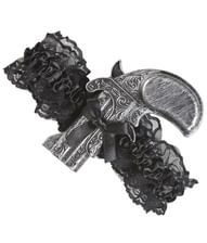 Svart strumpeband med antik pistol.